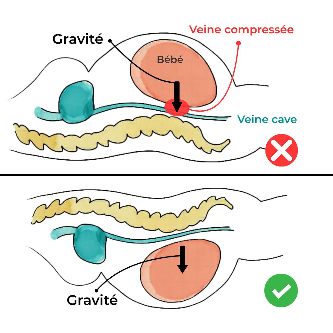 Dormir sur le dos compresse la veine cave et dégrade la circulation sanguine.